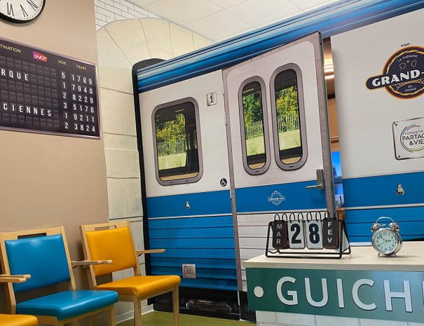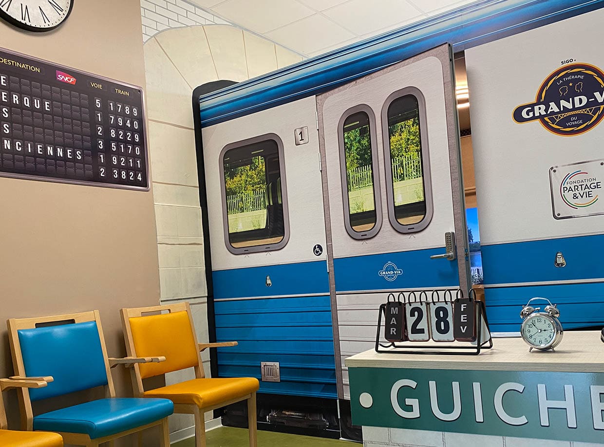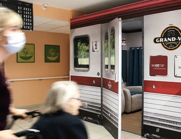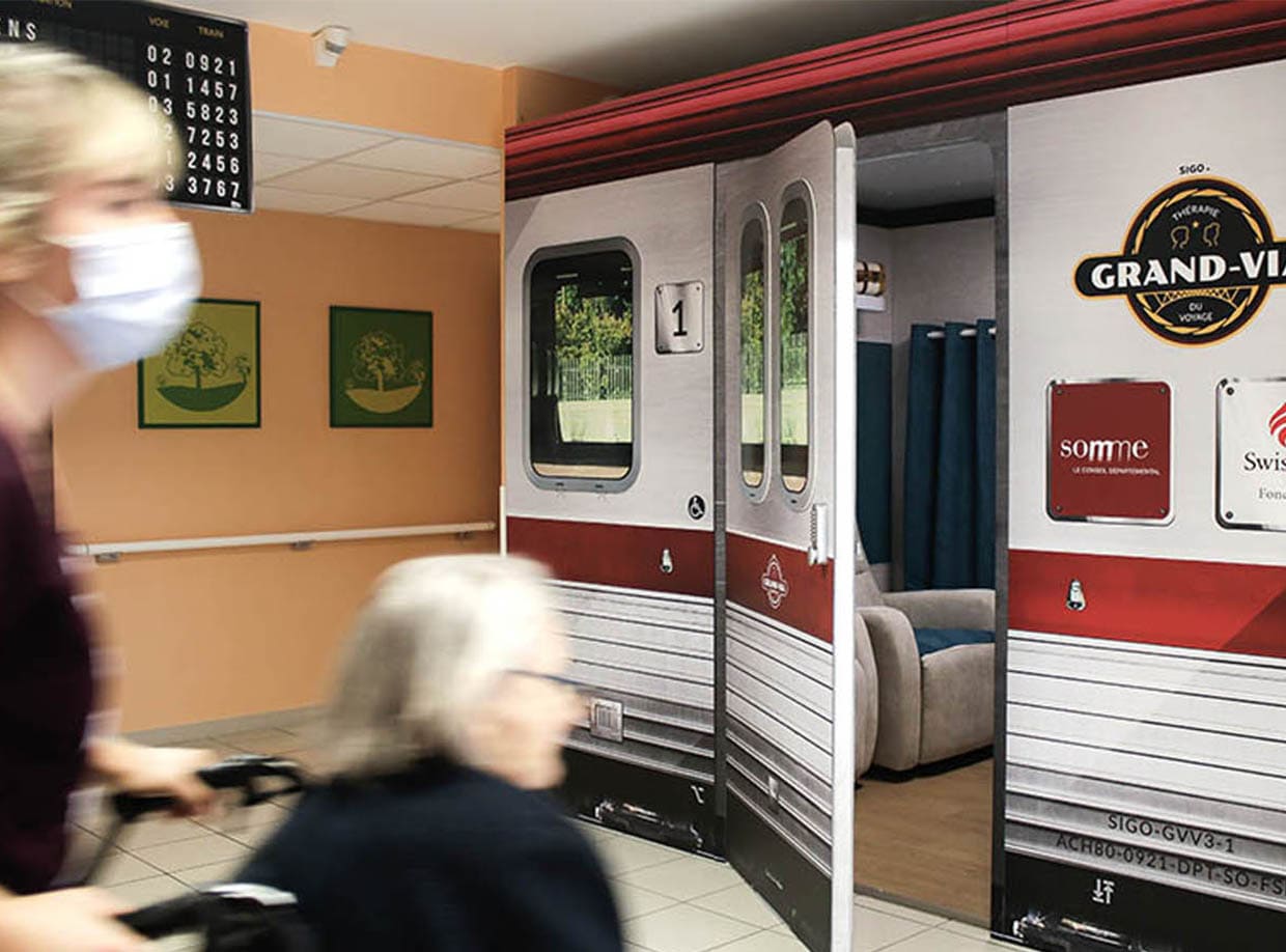 Une réplique de wagon de train pour faire voyager les résidents atteints de la maladie d'Alzheimer et réduire les troubles liés à cette pathologie.